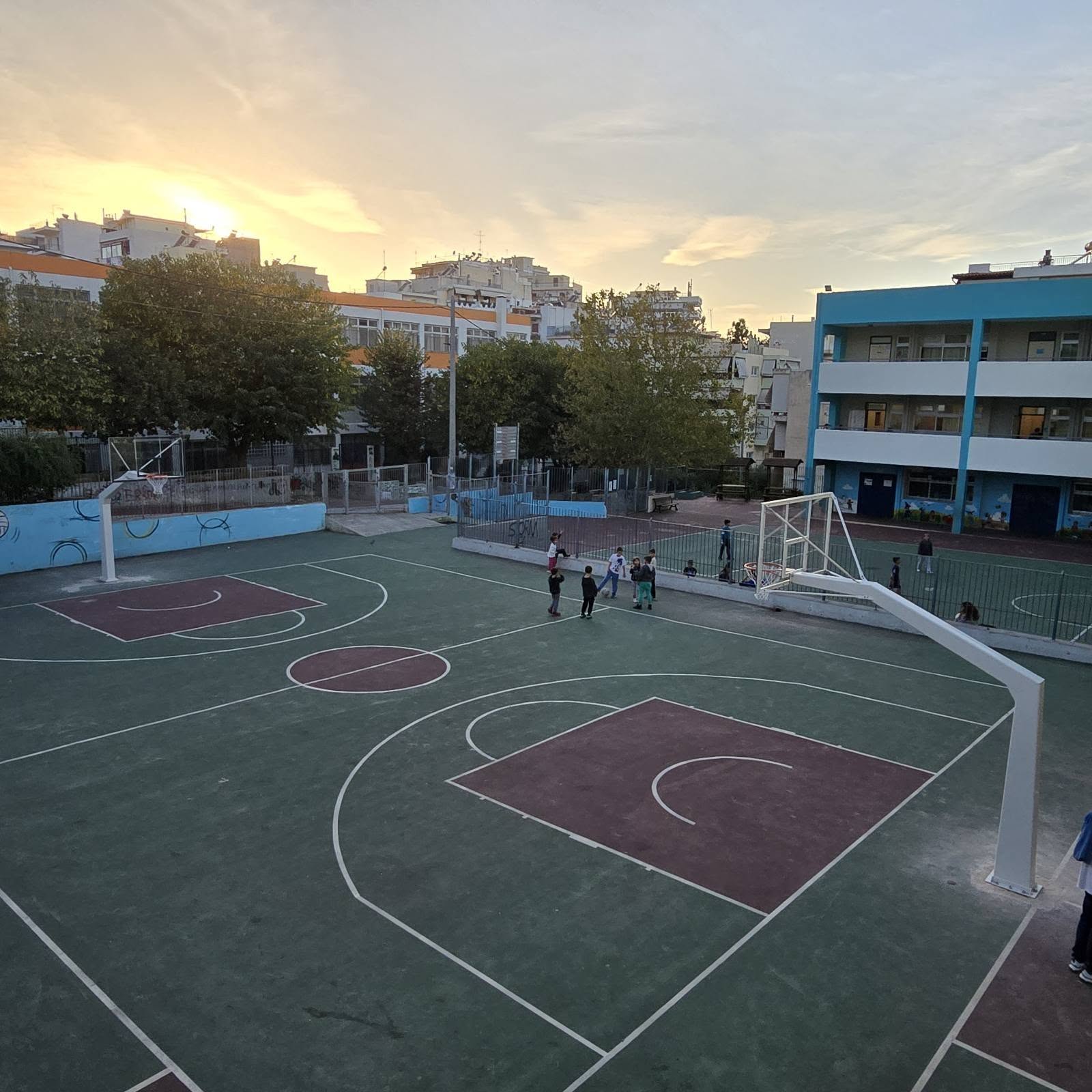 🏀 Νέες μπασκέτες Ολυμπιακού τύπου στα προαύλια του 3ου και 12ου Δημοτικού Σχολείου Ζωγράφου 🏀