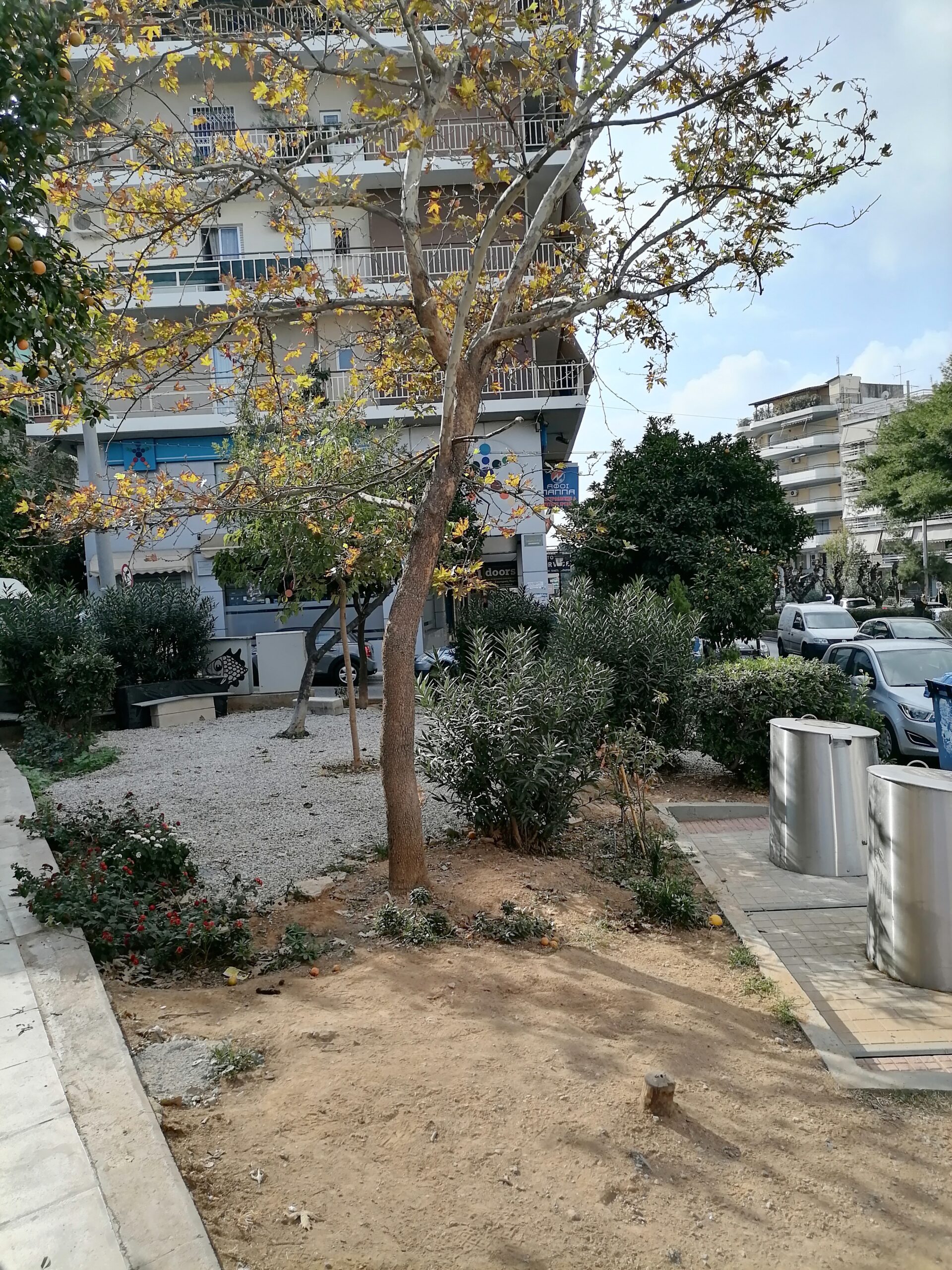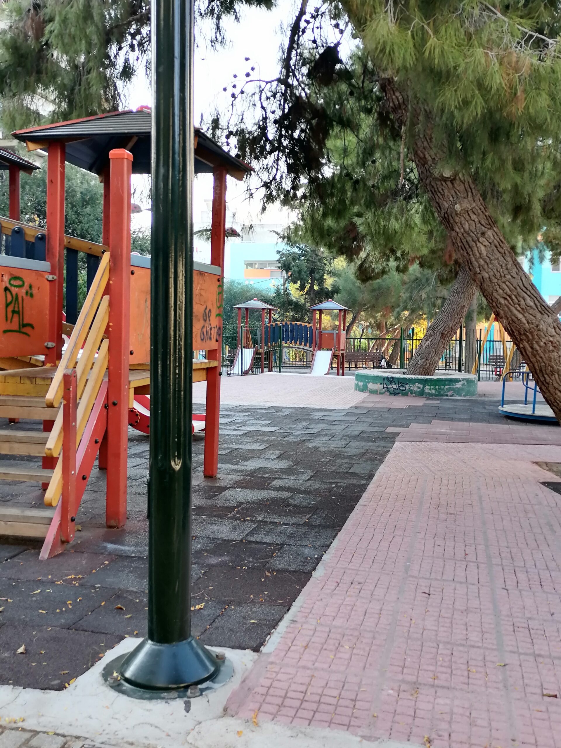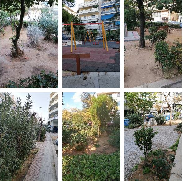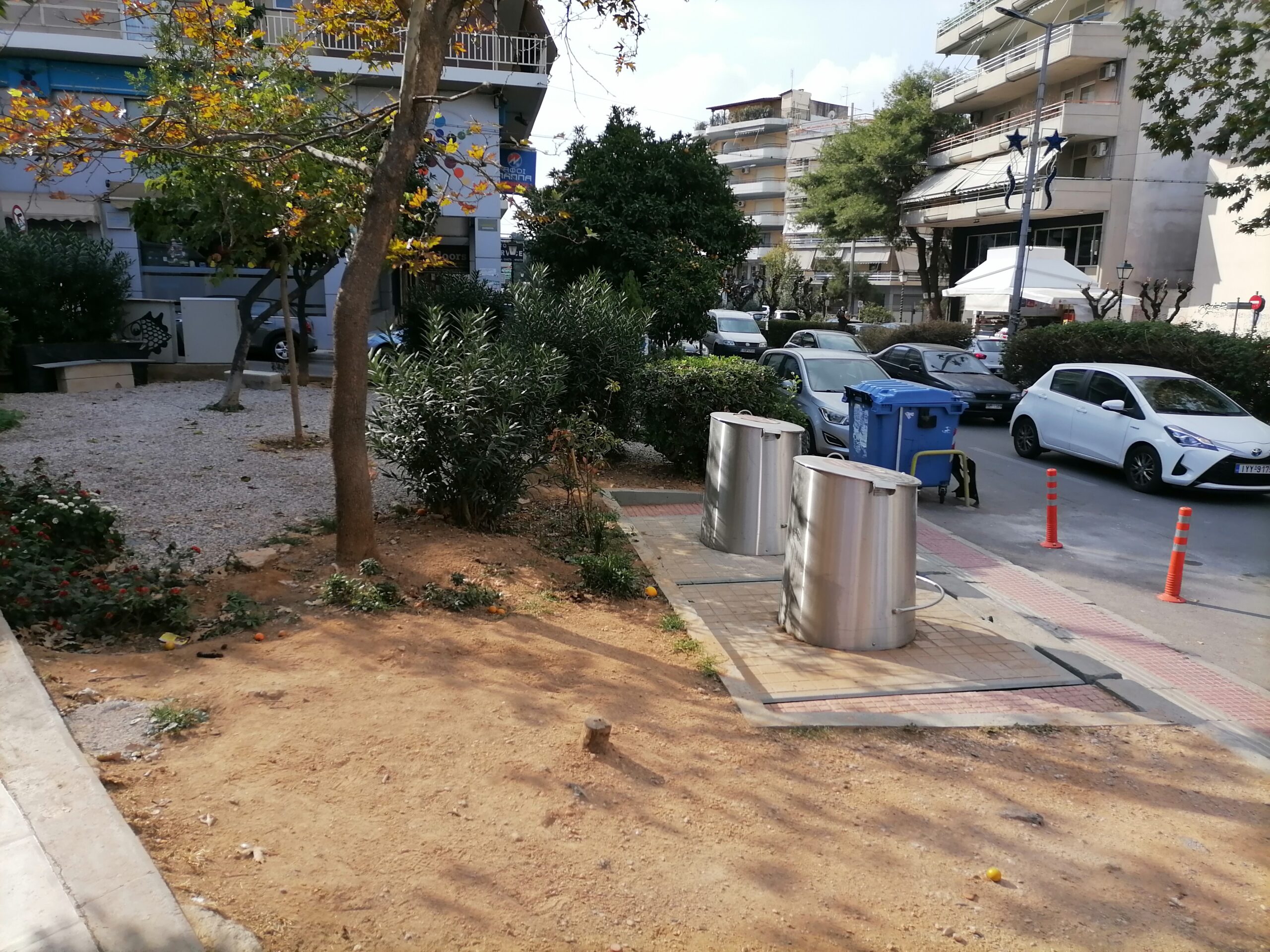 - αναβάθμιση των παρά την οδό Ούλωφ Πάλμε κοινόχρηστων χώρων. Εκατέρωθεν της οδού Ούλωφ Πάλμε κείνται πέντε (5) κοινόχρηστοι χώροι ((1) Ούλωφ Πάλμε-Χρυσίππου-Μπισκίνη, Ούλωφ Πάλμε-Ευρυνόμης-Θεοδάμαντος, (3) Ούλωφ Πάλμε-Θεοδάμαντος-Ανακρέοντος, (4) επί της Ούλωφ Πάλμε, (5) Ούλωφ Πάλμε-Δαμασίππου-Λιβύης), στους οποίους φύονται αρκετά δένδρα και θάμνοι, παραμένουν όμως αναξιοποίητοι και χρήζουν αναδιαμόρφωσης, επιμέλειας και εγκατάστασης του κατάλληλου αστικού εξοπλισμού προκειμένου να αποτελέσουν ευχάριστους χώρους στάσης και εκτόνωσης και να καταστούν χρηστικοί για το κοινό, διευρύνοντας παράλληλα τον πολυσύχναστο δημόσιο χώρο της κεντρικότατης οδού Ούλωφ Πάλμε. Το έργο αυτό προβλέπει τον επανασχεδιασμό των φυτευμένων επιφανειών, τη μεταφύτευση των θάμνων μπορντούρας που αποκλείουν την πρόσβαση και μειώνουν οπτικά τον ελεύθερο χώρο και τη φυτοτεχνική βελτίωσή τους (βοτάνισμα, αναδιαμόρφωση κόμης δένδρων και θάμνων), τη διάστρωση των επιφανειών που πατώνται με συνθετικό χλοοτάπητα άριστης ποιότητας (οι χώροι δεν υδρεύονται) ή διακοσμητικό ποταμίσιο βότσαλο, καθώς και την εγκατάσταση αστικού εξοπλισμού (κιόσκια με καθιστικά για σκίαση και προστασία από τις καιρικές συνθήκες, τραπεζόπαγκοι, όργανα πολλαπλών δραστηριοτήτων υπαίθριας εκγύμνασης), για την αισθητική αναβάθμισή τους και την εξυπηρέτηση του κοινού. Παρουσιάζεται στις φωτογραφίες ενδεικτική τυπολογία.