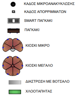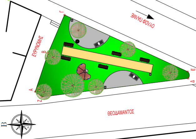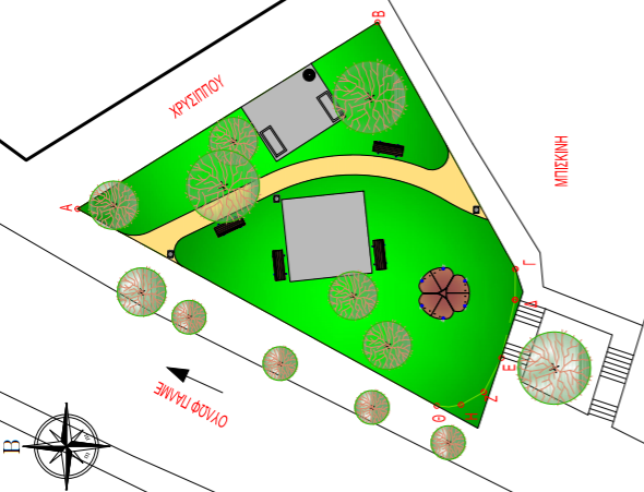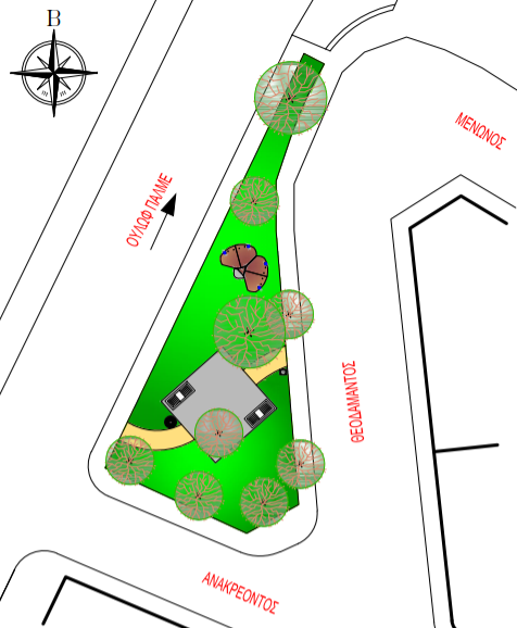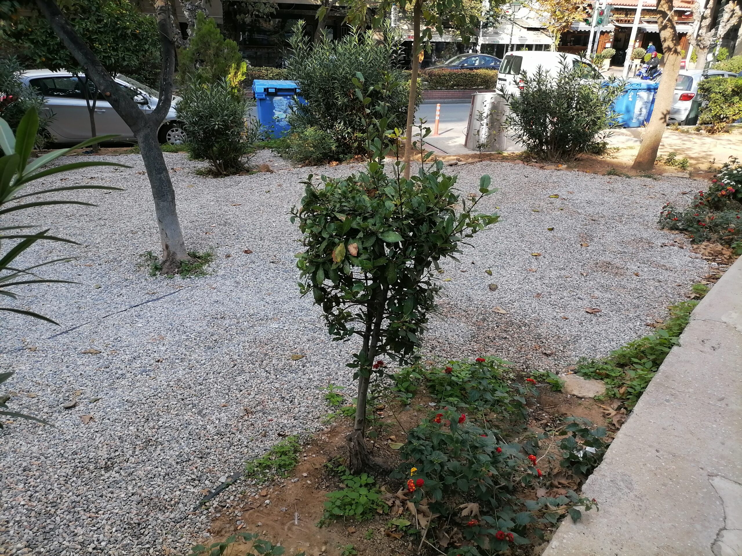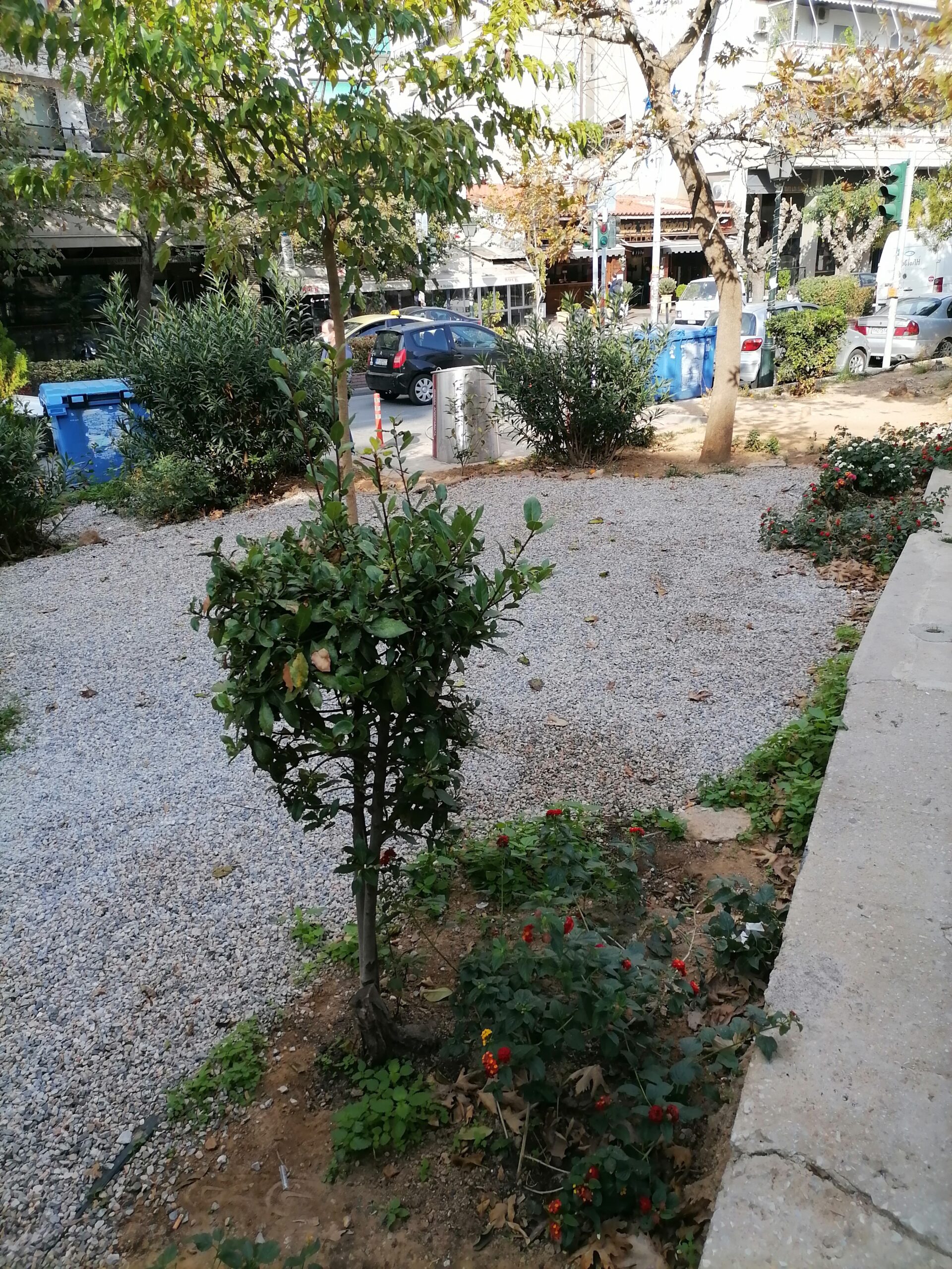 - αναβάθμιση των παρά την οδό Ούλωφ Πάλμε κοινόχρηστων χώρων. Εκατέρωθεν της οδού Ούλωφ Πάλμε κείνται πέντε (5) κοινόχρηστοι χώροι ((1) Ούλωφ Πάλμε-Χρυσίππου-Μπισκίνη, Ούλωφ Πάλμε-Ευρυνόμης-Θεοδάμαντος, (3) Ούλωφ Πάλμε-Θεοδάμαντος-Ανακρέοντος, (4) επί της Ούλωφ Πάλμε, (5) Ούλωφ Πάλμε-Δαμασίππου-Λιβύης), στους οποίους φύονται αρκετά δένδρα και θάμνοι, παραμένουν όμως αναξιοποίητοι και χρήζουν αναδιαμόρφωσης, επιμέλειας και εγκατάστασης του κατάλληλου αστικού εξοπλισμού προκειμένου να αποτελέσουν ευχάριστους χώρους στάσης και εκτόνωσης και να καταστούν χρηστικοί για το κοινό, διευρύνοντας παράλληλα τον πολυσύχναστο δημόσιο χώρο της κεντρικότατης οδού Ούλωφ Πάλμε. Το έργο αυτό προβλέπει τον επανασχεδιασμό των φυτευμένων επιφανειών, τη μεταφύτευση των θάμνων μπορντούρας που αποκλείουν την πρόσβαση και μειώνουν οπτικά τον ελεύθερο χώρο και τη φυτοτεχνική βελτίωσή τους (βοτάνισμα, αναδιαμόρφωση κόμης δένδρων και θάμνων), τη διάστρωση των επιφανειών που πατώνται με συνθετικό χλοοτάπητα άριστης ποιότητας (οι χώροι δεν υδρεύονται) ή διακοσμητικό ποταμίσιο βότσαλο, καθώς και την εγκατάσταση αστικού εξοπλισμού (κιόσκια με καθιστικά για σκίαση και προστασία από τις καιρικές συνθήκες, τραπεζόπαγκοι, όργανα πολλαπλών δραστηριοτήτων υπαίθριας εκγύμνασης), για την αισθητική αναβάθμισή τους και την εξυπηρέτηση του κοινού. Παρουσιάζεται στις φωτογραφίες ενδεικτική τυπολογία.