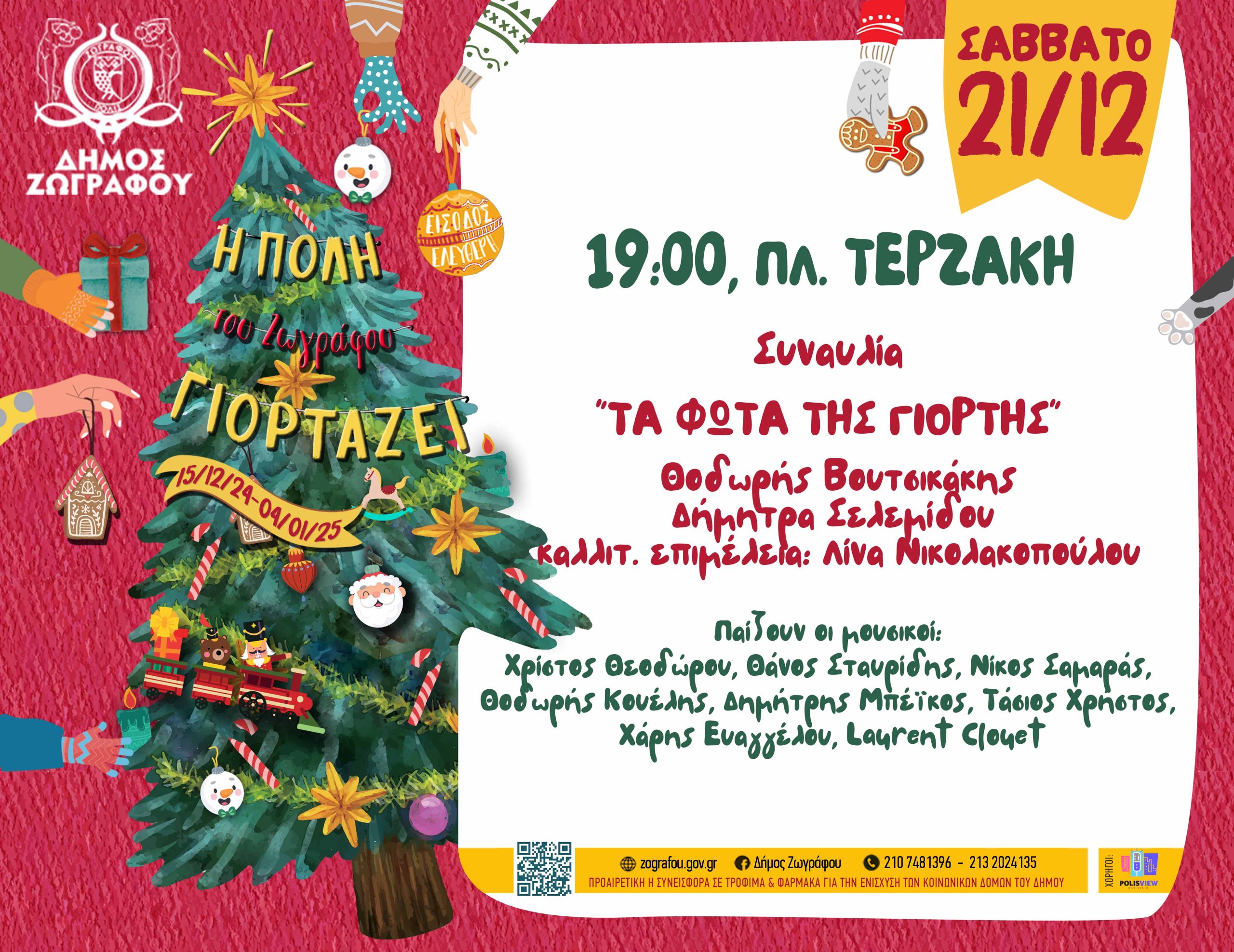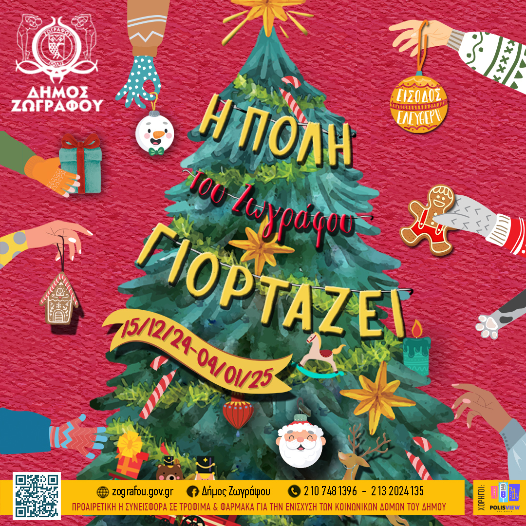 Το πλούσιο Χριστουγεννιάτικο πρόγραμμα για τα Χριστούγεννα 2025 στην πόλη του Ζωγράφου διαμορφώνεται ως εξής: