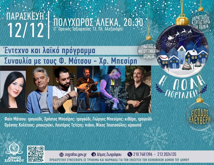 Οι Χριστουγεννιάτικες εκδηλώσεις στην πόλη μας ξεκινούν και επίσημα αυτή την Παρασκευή 12 Δεκεμβρίου με μια υπέροχη συναυλία!