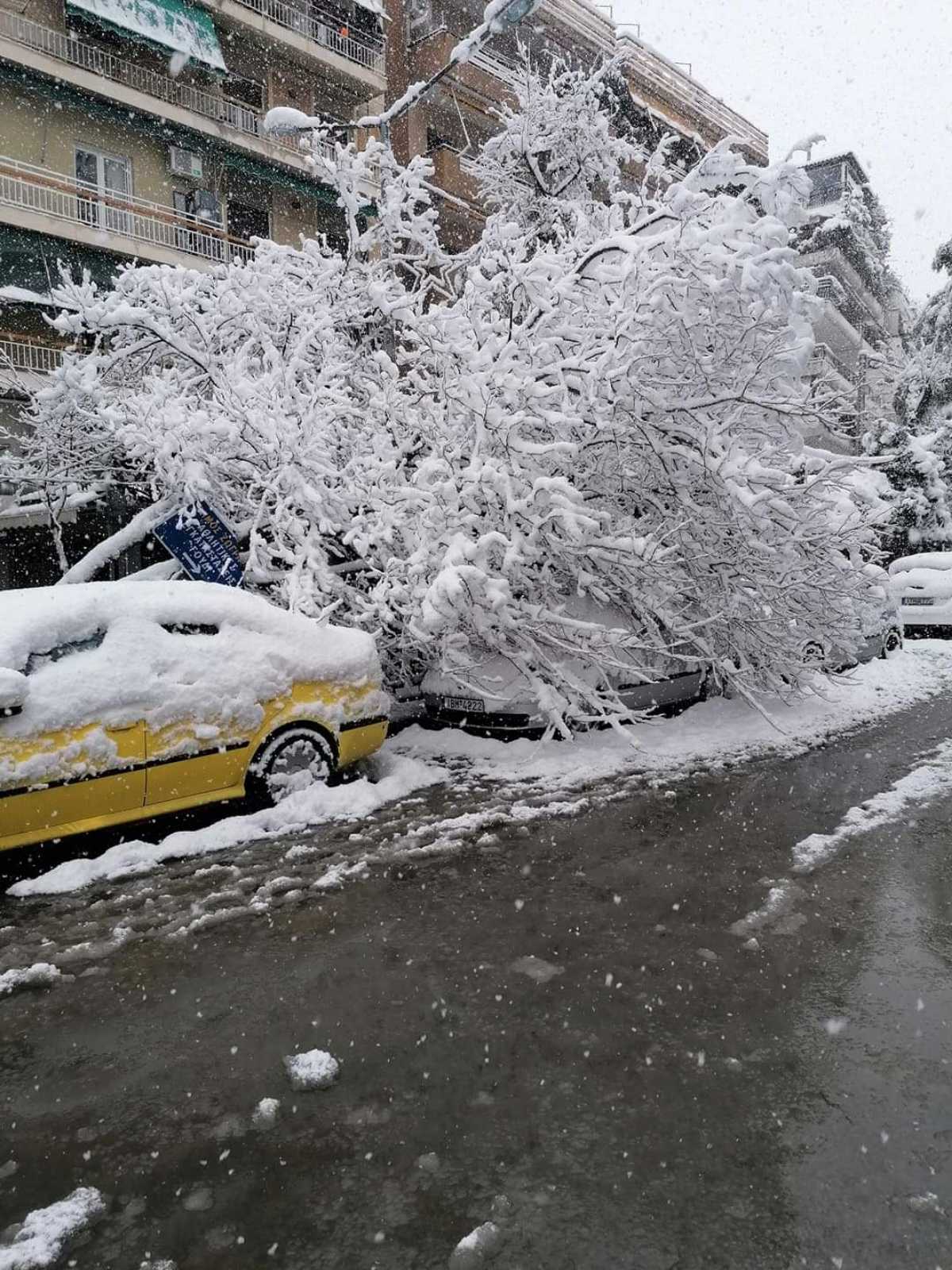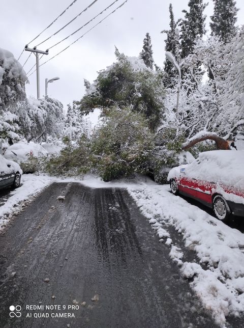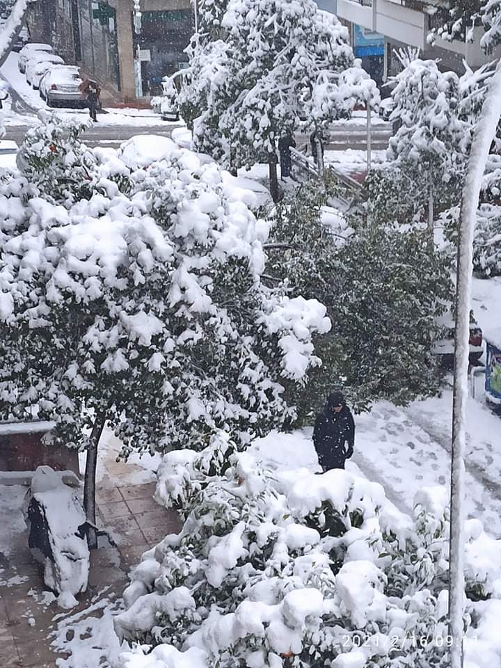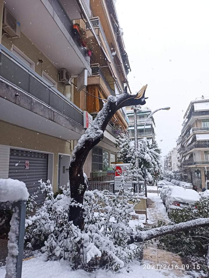 Συνεχίζονται οι επιχειρήσεις της υπηρεσίας Πρασίνου για την απομάκρυνση δένδρων που έπεσαν λόγω της σφοδρής χιονόπτωσης.