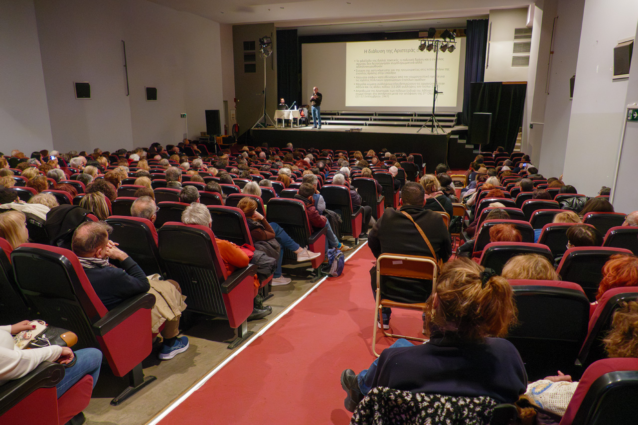 Ακολούθησε ουσιαστική συζήτηση με το κοινό, το οποίο συμμετείχε ενεργά με ερωτήσεις και παρεμβάσεις, επιβεβαιώνοντας το διαρκές ενδιαφέρον για τη σύγχρονη ιστορία.