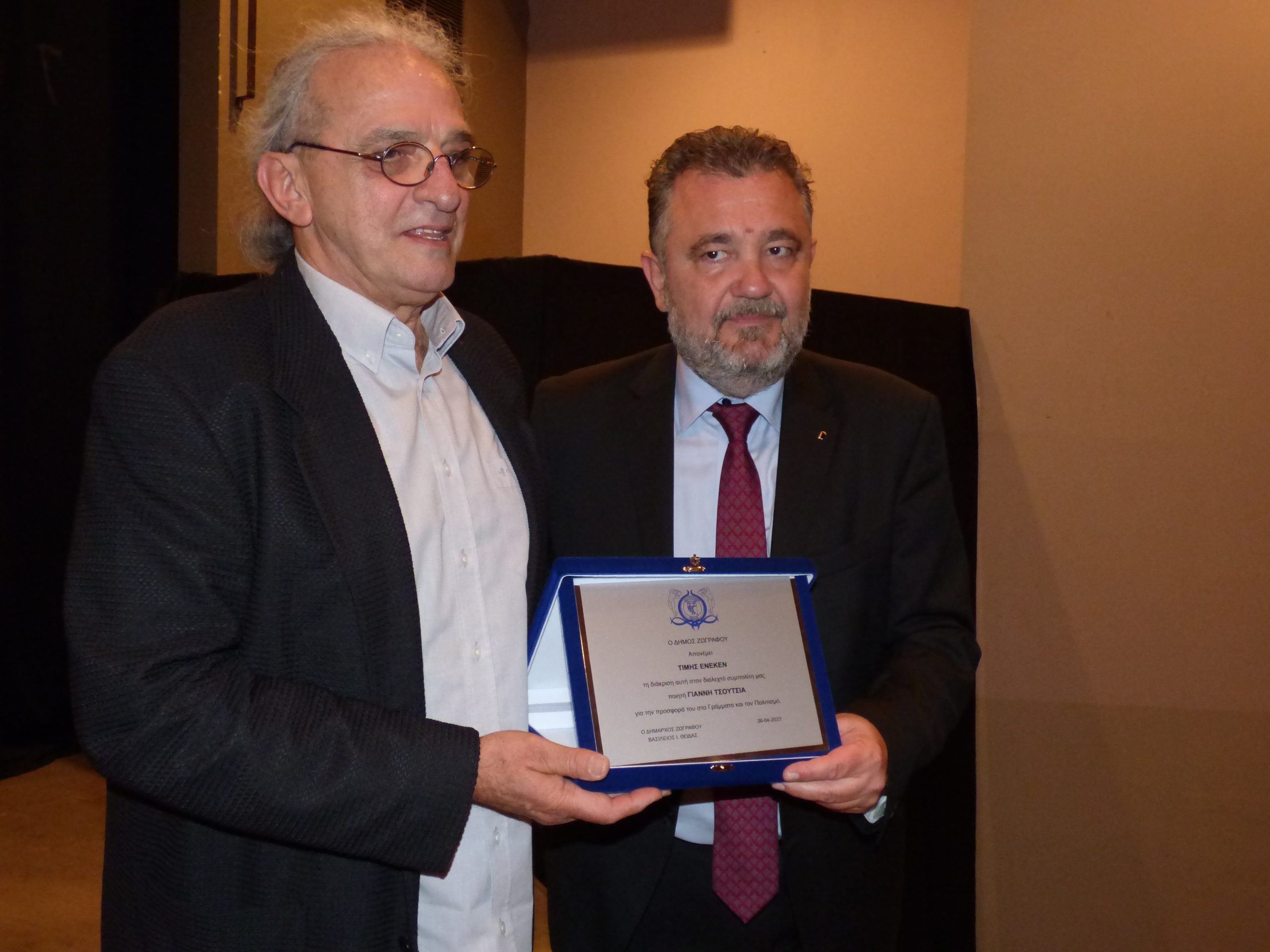 Τιμητικές πλακέτες απέδωσαν στον Ζωγραφιώτη ποιητή ο Πρόεδρος του Συνδέσμου των Παλαιών Ζωγραφιωτών Δημήτρης Μπίτσικας και ο μαέστρος της Μεικτής Χορωδίας του Συνδέσμου Παλαιών Ζωγραφιωτών.